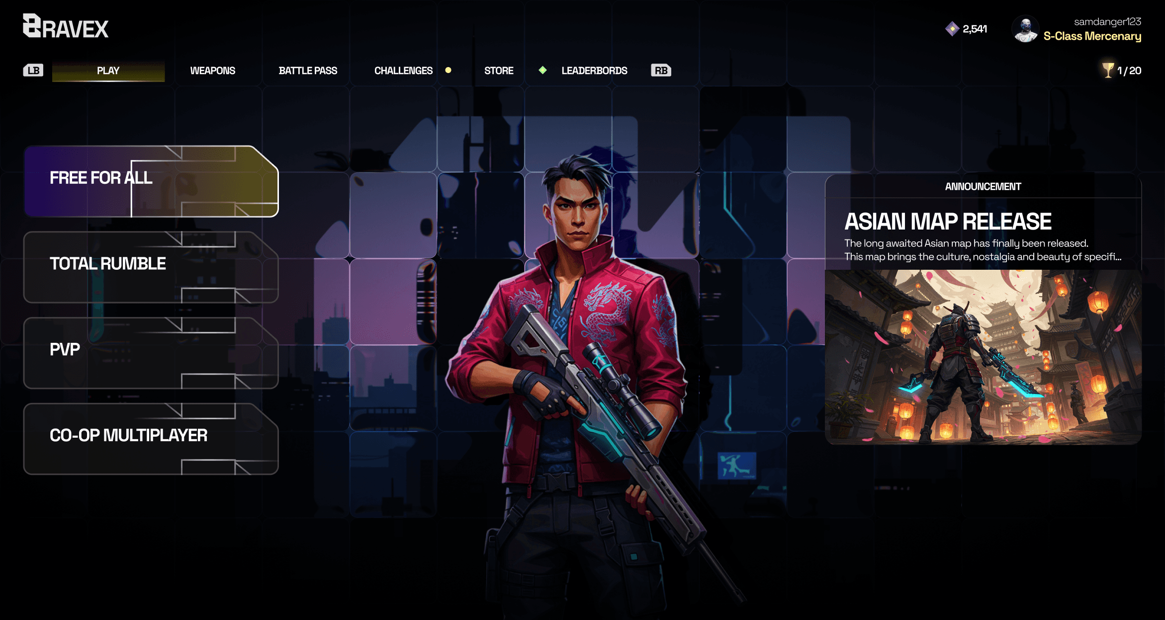 The menus and navigation in Bravex make it easy and fun for players to jump between screens and game options.
