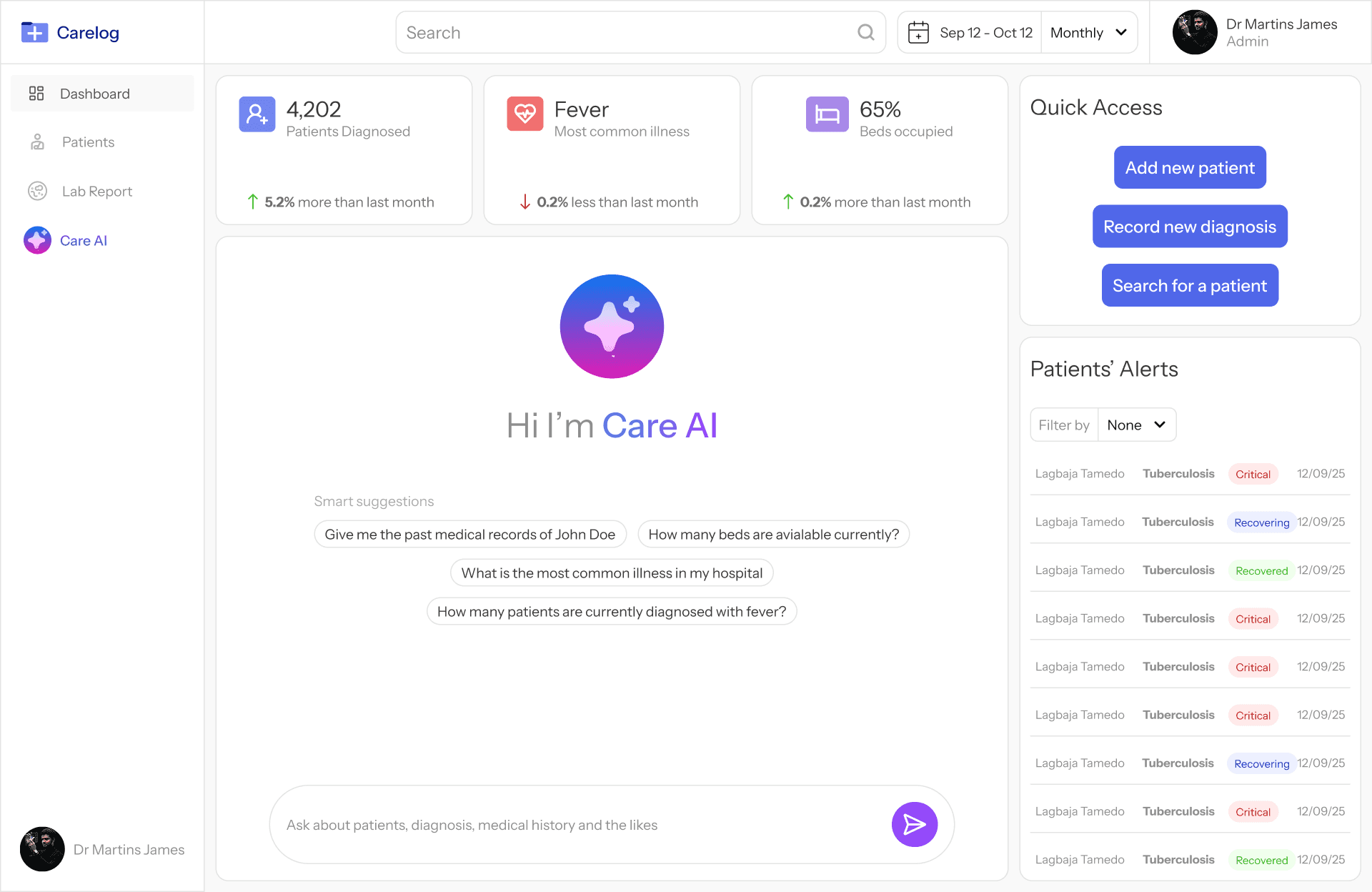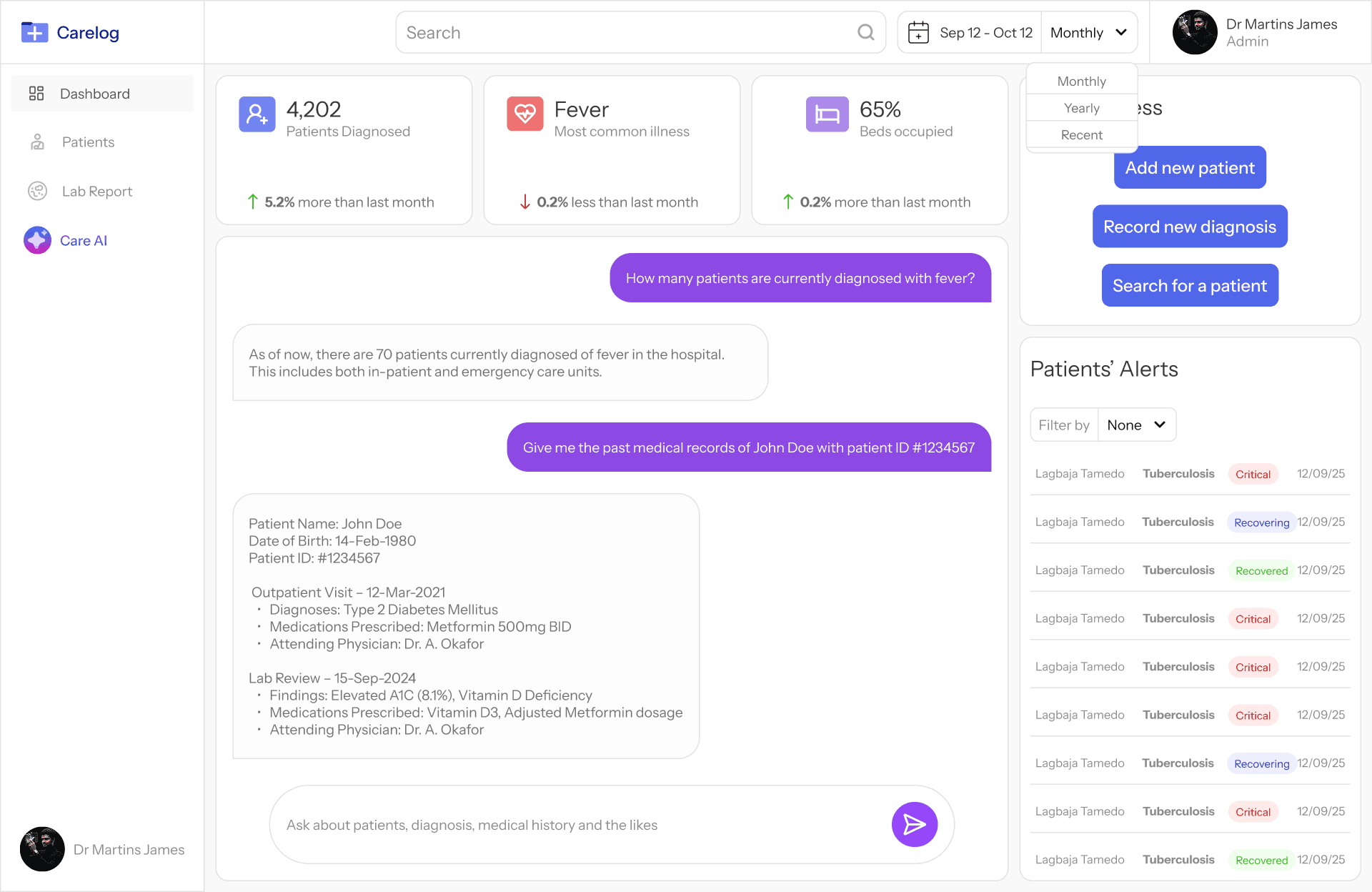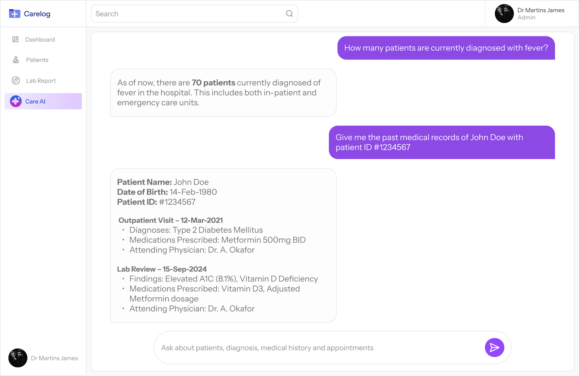 Carelog solves this by providing a digital platform that securely stores patient information, making it easy to manage, update, and access records anytime.