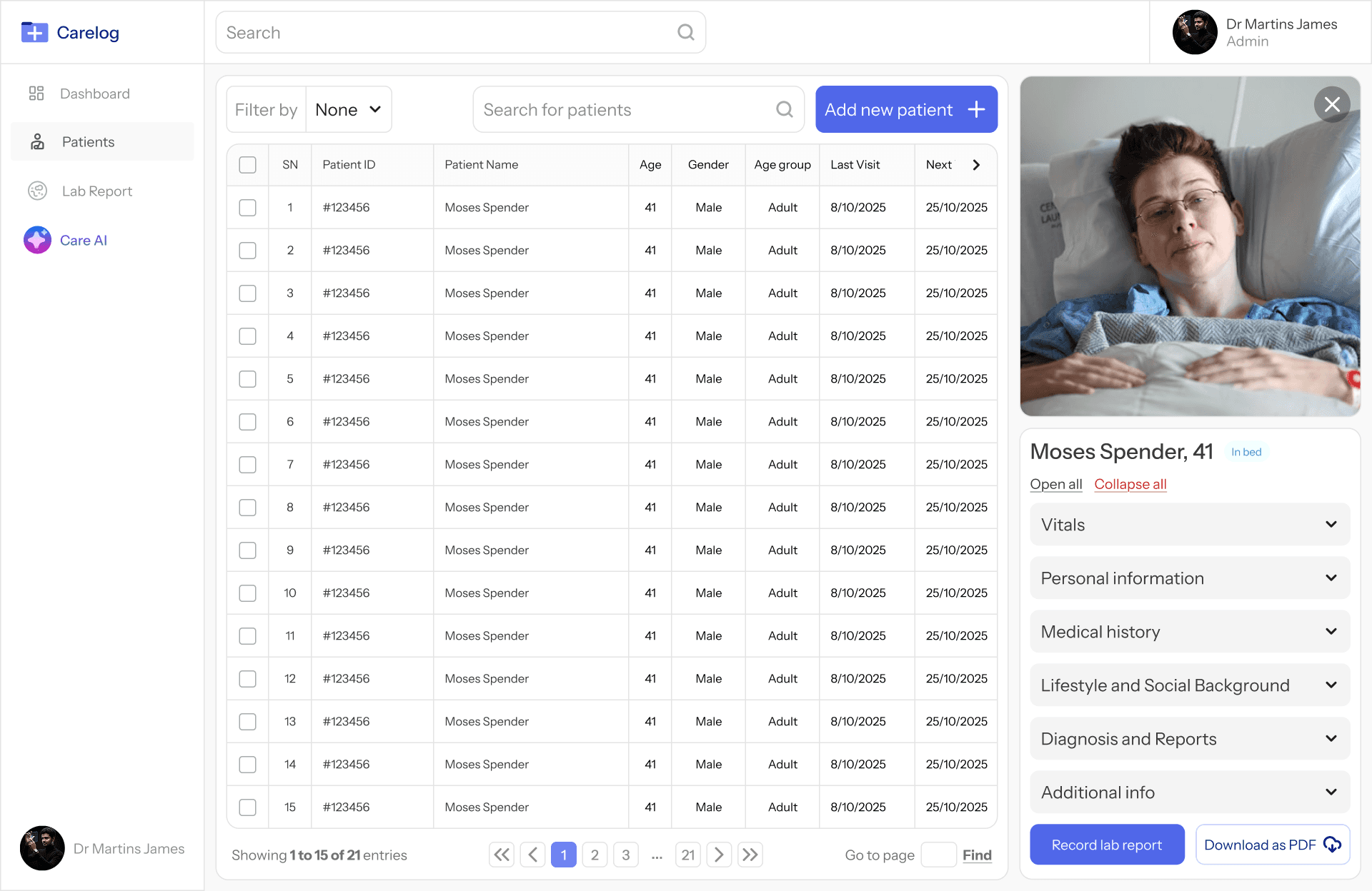 A DASHBOARD that helps medical practitioners securely store and manage detailed patient information digitally.